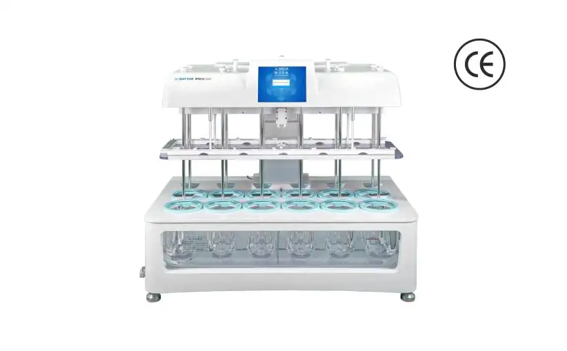 What sets instruments like the RT612 apart for many users is how they address day-to-day lab frustrations rather than just ticking specification boxes. Automatic preheating brings the medium to the correct temperature before the run starts. Sampling needles can be positioned according to the set solvent volume and are not left resident in the vessel, helping to reduce turbulence. Covered dissolving cups are automatically centered, so analysts do not waste time wrestling with alignment.