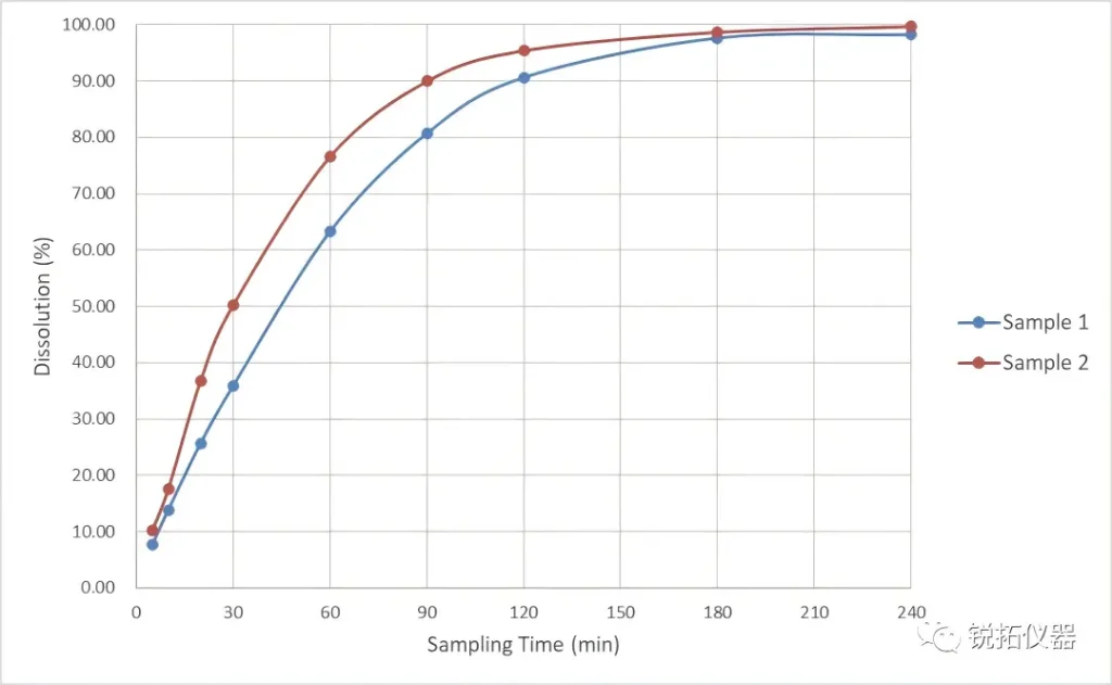 Strong differentiation ability: The test results clearly show that the release rate of Sample 2 is significantly faster than that of Sample 1.