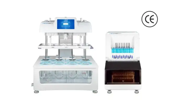 Raytor’s RT600-ST Automated Dissolution System is built as an 8-position, single-drive, autosampling platform designed to meet major compendial requirements, including ChP (0931), USP (711/724), and EP (2.9.3/2.9.4). It supports automatic dosing, automatic positioning, automatic sampling, optional online dilution, and real-time display of speed and temperature—aiming for high precision with higher efficiency.